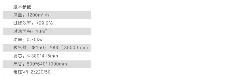 被污染的空氣通過吸氣罩和吸氣臂吸收到過濾裝置中,煙塵和顆粒物被濾芯過濾掉,清潔后的空氣從設(shè)備的底部返回到工作間。