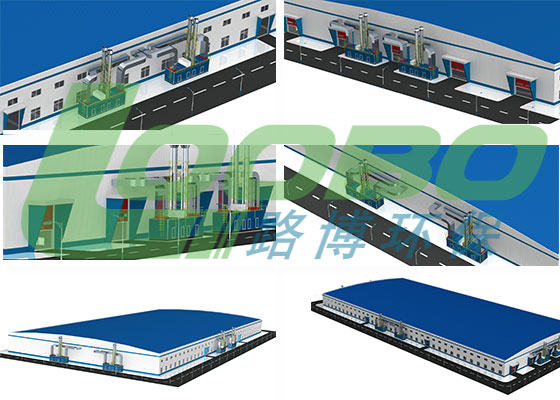 整體廠房通風系統不僅能有效調節設定范圍內的空氣溫度濕度,還能通過氣流的運動,將工作區域內產生的煙塵、粉塵向廠房上部,使廠房設定高度范圍內的空氣得到治理。